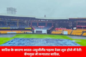 बेंगलुरु: भारत और न्यूजीलैंड के बीच पहला टेस्ट मैच बेंगलुरु में खेला जाना था, लेकिन लगातार बारिश के कारण मैच के शुरू होने में देरी हो रही है। बेंगलुरु में सुबह से लगातार बारिश हो रही है, जिससे मैदान गीला हो गया है और पहले सेशन के धुलने की संभावना है। मौसम विभाग के अनुसार, पूरे दिन बारिश जारी रहने की संभावना है, जिससे टेस्ट मैच के पहले दिन का खेल प्रभावित हो सकता है।