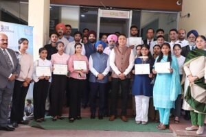 चंडीगढ़ : पंजाब के युवाओं को सशक्त बनाने की दिशा में एक महत्वपूर्ण कदम उठाते हुए आज पंजाब भवन, चंडीगढ़ में एक प्रमाण पत्र वितरण समारोह आयोजित किया गया। इस अवसर पर 30 ग्रेजुएट्स को राज्य सभा सांसद डॉ. विक्रमजीत सिंह साहनी, जो कि सन फाउंडेशन के चेयरमैन भी हैं, ने रोजगार सृजन मंत्री अमन अरोड़ा के साथ प्रमाण पत्र प्रदान किए। यह वह ग्रेजुएट्स हैं, जिन्होंने बैंकिंग, फाइनेंसियल सर्विसेज और इंश्योरेंस (बीएफएसआई) सेक्टर स्किल कोर्स पूरा करने के बाद विभिन्न बैंकों में सफलतापूर्वक नौकरी पा ली है।