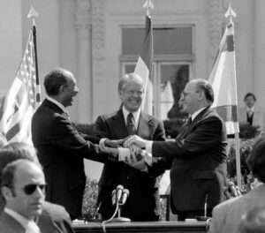 1978 – Anwar Sadat of Egypt and Menachem Begin of Israel were awarded the Nobel Prize for Peace for negotiations that resulted first in the Camp David Accords, then in a peace treaty between their countries (photo credit-Atlantic).