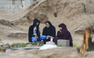 The strike came as Palestinians in Gaza marked a muted Eid al-Fitr holiday, which ends the holy fasting month of Ramadan, by visiting the graves of loved ones killed in the war. In the Jabaliya refugee camp near Gaza City, people sat quietly by graves surrounded by buildings destroyed by Israel’s offensive in response to the deadly Hamas attack on Oct. 7.