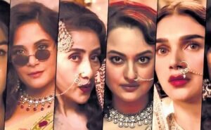 Heeramandi, a period drama, portrays the lives of courtesans in the red-light area of Lahore. While the area, during the Mughal rule, was a centre of classical arts practised by tawaifs who enjoyed royal patronage, it was reduced to a hub of prostitution under British rule. The eight-episode series will capture this tumultuous milieu through a tale of love, betrayal, loss and power games, brought on screen by actors Sonakshi Sinha, Manisha Koirala, Richa Chadha, Aditi Rao Hydari, Sanjeeda Shaikh and Sharmin Segal, decked in angiya (bodice) with ghaghras, shararas, kalidar pyjamas with kurtas and sheer dupattas to sequin saris and more, all made by the Narulas.