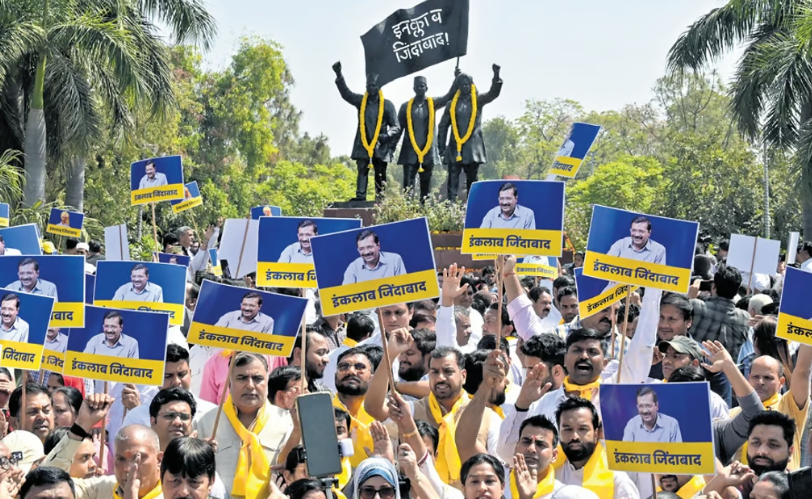 NEW DELHI: The AAP on Saturday held a demonstration at Shaheedi Park in central Delhi against Chief Minister Arvind Kejriwal arrest by the ED in connection to alleged liquor policy scam and demanded his immediate release. The Congress, a constituent of the opposition-led INDIA bloc, joined it. Holding placards and raising slogans, AAP leaders alleged that the BJP-led central government misuses the agencies to target opposition leaders.