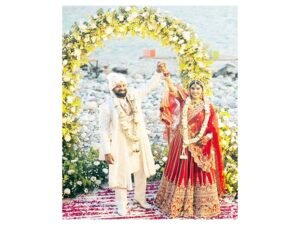 In one photograph, Rajat is seen holding his bride’s hand, while another frame shows the couple sharing a quiet, romantic moment. The final image offers a vibrant glimpse of the varmala ceremony.