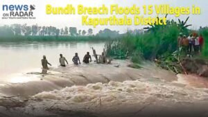 Punjab : A breach in a bundh along the Sutlej river in Kapurthala district has resulted in severe flooding across at least 15 villages, displacing hundreds of residents and submerging large swathes of farmland. The incident occurred late on Monday night following continuous heavy rainfall in the region and upstream areas, which caused water levels in the river to swell beyond safe limits.