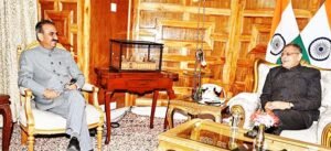 Chief Minister Thakur Sukhvinder Singh Sukhu called on Governor Kavinder Gupta at Lok Bhavan, today. During the courtesy meeting, the Chief Minister honoured the Governor by presenting him with a traditional Himachali cap, shawl and a memento. On the occasion a discussion was held on various matters in the interest of the development and welfare of the state.