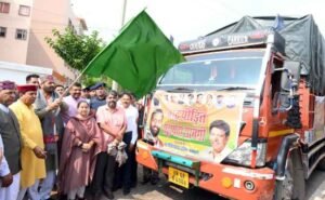 Panchkula: Haryana Chief Minister Nayab Singh Saini on Sunday flagged off vehicles carrying relief material to flood-affected areas in Himachal Pradesh and Punjab from the State BJP Office amid the continuous rainfall across the state.