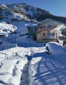Gangtok : Fresh snowfall blanketed the higher reaches of the Indo-China border, including the Nathula Pass area, on Friday, bringing temperatures down sharply across Sikkim. The mercury dipped to sub-zero levels in several high-altitude regions, disrupting movement along key mountain routes.