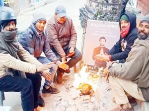 Srinagar : An unexpected change in the weather has heightened the cold in the hilly regions. Over the past few days, temperatures have dropped sharply, disrupting daily life. As the cold deepens, people can be seen warming themselves around bonfires at various places. The severe cold is having an even greater impact on animals.