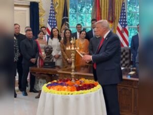 Trump lit the diya in the Oval Office, calling it “a symbol of faith in the victory of light over darkness” and extended his “warmest wishes to the people of India”.