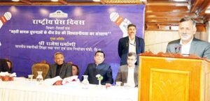 SHIMLA; While presiding over the State-level function of National Press Day here today the Technical Education Minister Rajesh Dharmani said that this day not only draws attention to the freedom and responsibilities of the press, but also underscores its role in building a transparent society. The press plays a pivotal role in democracy. Promoting transparency in the press will keep democracy vibrant and alive. He said that the role of the media is to convey important public issues to the government. The media’s job is to raise the voices of the underprivileged sections of society.