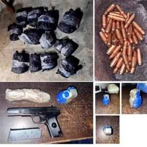 Amritsar : In a major crackdown, Punjab Police on Thursday arrested two in connection with a major narco-arms consignment in Amritsar and recovered 42.983 kg heroin along with weapons and ammunition.Sharing an X post, Punjab Director General of Police (DGP) Gaurav Yadav wrote, “Amritsar Rural Police busts a major narco-arms consignment with the help of the Village Defence Committee (VDC) and recovers 42.983 kg heroin, 4 hand grenades, one Star Mark pistol, 46 live .30 bore cartridges and an abandoned motorcycle.” DGP said that further investigations are underway to trace the absconding accused and the official would verify the chain of possession. “Subsequent investigation led to the arrest of 2 persons, both residents of Amritsar. Further investigation is underway to trace the absconding accused, verify the chain of possession, and uncover the wider conspiracy,” DGP wrote in his tweet.