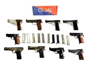 During the operation, police recovered five 7.65 MM country-made pistols along with 10 magazines from a Grand Vitara car linked to the accused. Further investigation based on the disclosure of the main accused led to the recovery of another five pistols and 10 magazines from the Mathura–Palwal Highway, taking the total seizure to 10 pistols and 20 magazines.