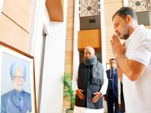 New Delhi : Congress leader Rahul Gandhi paid tribute to senior party leaders Dr Manmohan Singh, Shivraj Patil, and Sriprakash Jaiswal at Indira Bhawan, New Delhi, on Saturday.In his message, Gandhi remembered the leaders for their integrity, selfless public service, and steadfast commitment to the nation and the Congress party. He noted that their values, wisdom, and exemplary lives would continue to guide future generations.In his Facebook post, he wrote, “Remembering Dr. Manmohan Singh ji, Shri Shivraj Patil ji, and Shri Sriprakash Jaiswal ji at Indira Bhawan, New Delhi today. The lives of these stalwarts were marked by integrity, selfless public service, and an unwavering commitment to the Nation and the Congress party. Their values, wisdom, and example will continue to guide us.”