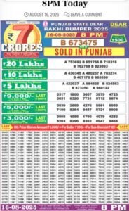 पंजाब डैस्क: पंजाब राज्य राखी बंपर 2025 लॉटरी का रिजल्ट घोषित हो गया है। इस बार का पहला 7 करोड़ रुपए का इनाम टिकट नंबर B 673475 के लिए निकला, जिससे विजेता की किस्मत पूरी तरह बदल गई।