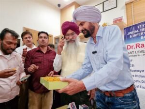 PPCC president Amrinder Singh Raja Warring along with local Congress leaders reached the hospital to congratulate Balkaur.