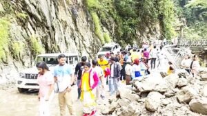 Mangan : Around 150 to 200 tourists have been stranded in Chungthang following multiple landslides triggered by heavy rainfall in North Sikkim, according to District Collector Anant Jain. Jain said the landslides occurred along key routes connecting Gangtok to Lachen and Chungthang to Lachen, leaving tourists en route to Lachen stuck at Chungthang. Tourists have been kept at the ITBP Camp and the Gurudwara.