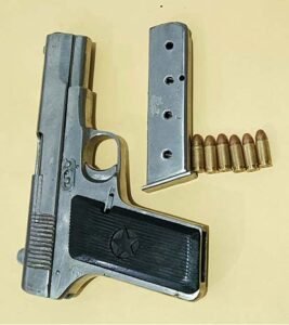 The BSF troops, in collaboration with the Punjab Police, apprehended an Indian smuggler from near Dana Mandi in Dera Baba Nanak, Gurdaspur. The accused is a resident of Kahlanwali village. A pistol with six live rounds has been recovered from his possession.