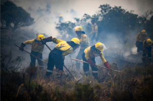The Department of Forestry, Fisheries and the Environment said its firefighting crews were working on wildfires in four regions of the Western Cape. One fire had been burning for nine days.
