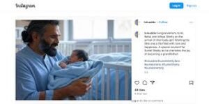Bollywood actor Suniel Shetty recently shared an emotional and heartwarming experience with his fans, describing the joy of holding his granddaughter for the first time. The veteran actor, who is known for his tough persona on-screen, revealed that the moment he held his granddaughter in his arms, it felt like nothing else in life mattered. Shetty’s candid reflection resonated deeply with many of his fans, who were touched by his heartfelt words.