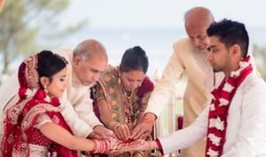 (iv) Fourth Step Vow: “Let us take the fourth step to acquire knowledge, happiness, and harmony by mutual love and trust.” Meaning: It represents the couple’s pursuit of knowledge, happiness, and harmony in their relationship.