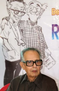 orld famous illustrator Rasipuram Krishnaswamy Iyer Laxman, better known as R. K. Laxman, the creator of iconic ‘Common Man’. He was a world known satirist and Cartoonist with Times of India for over 5 decades (pic credit-Britannica).