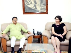 Agartala : Tripura Chief Minister Manik Saha met Kathy Giles Diaz, U.S. Consul General, Kolkata, at the State Secretariat in Agartala, on Thursday. In a post on X, CM Saha said, “Had an insightful meeting with Ms. Kathy Giles Diaz, U.S. Consul General, Kolkata today at the Secretariat, Agartala.” Earlier, CM Manik Saha said that the present government is working with special emphasis on infrastructure development. For this purpose, about Rs 7,000 crore has been allocated in the budget.